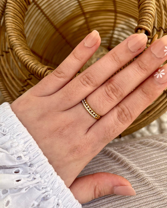 Bague dorée avec rangées de strass PRUDENCE