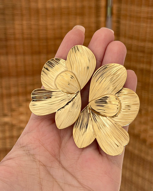 Grandes boucles d'oreilles fleurs dorées en acier ANAELLE