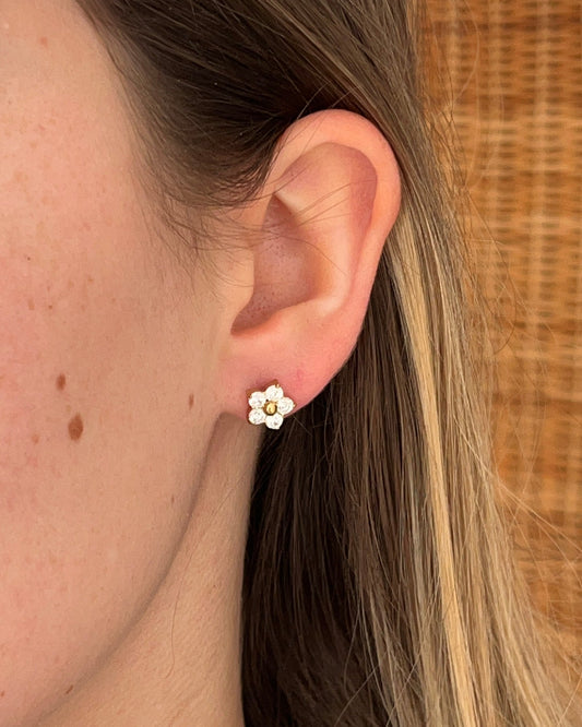 Puces d'oreilles fleur avec strass en acier SOLANE