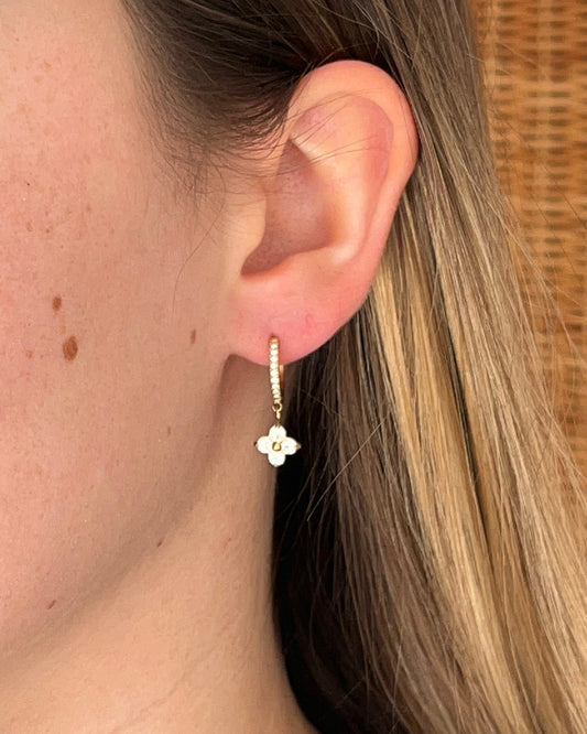 Boucles d'oreilles pampille fleur résine AVA blanc