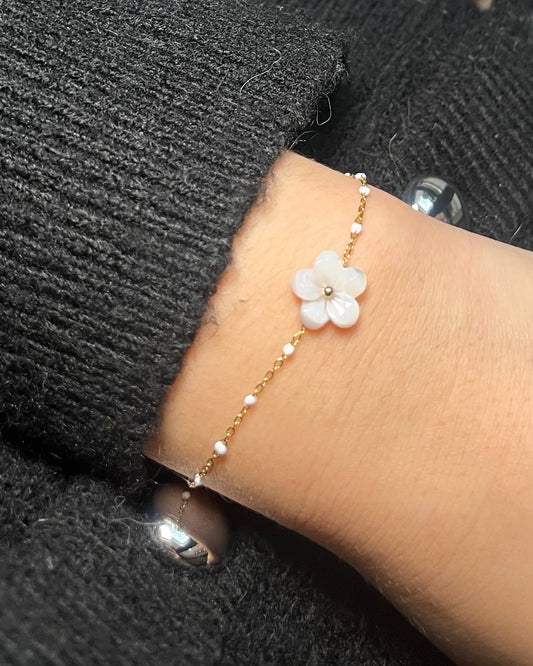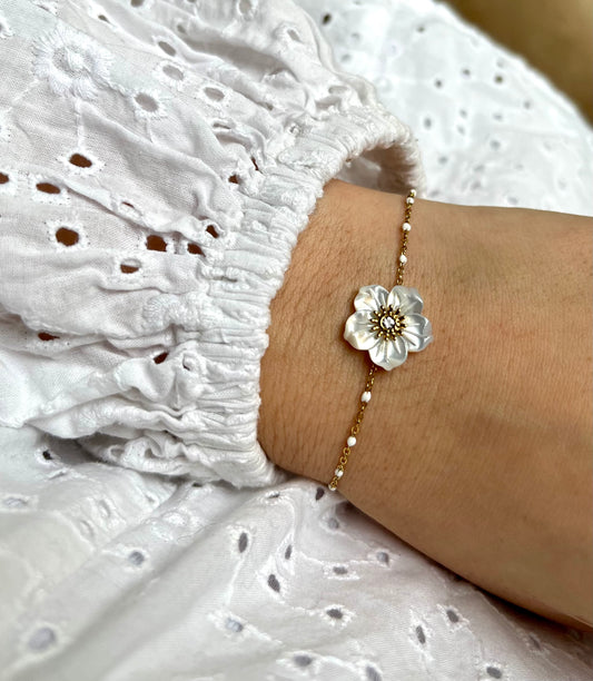 Bracelet fleur blanche en nacre élégant EMMA