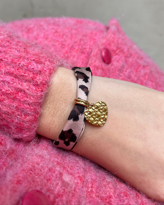 Bracelet en tissu léopard breloque coeur LEO