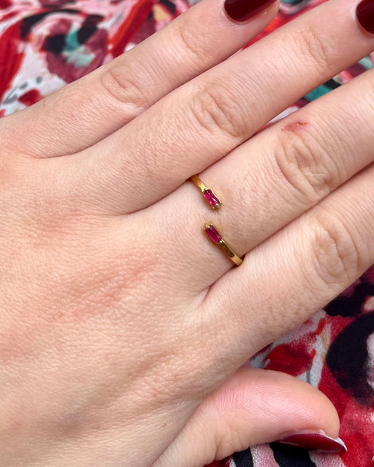 Bague ouverte double strass roses Acier inoxydable MELANIA