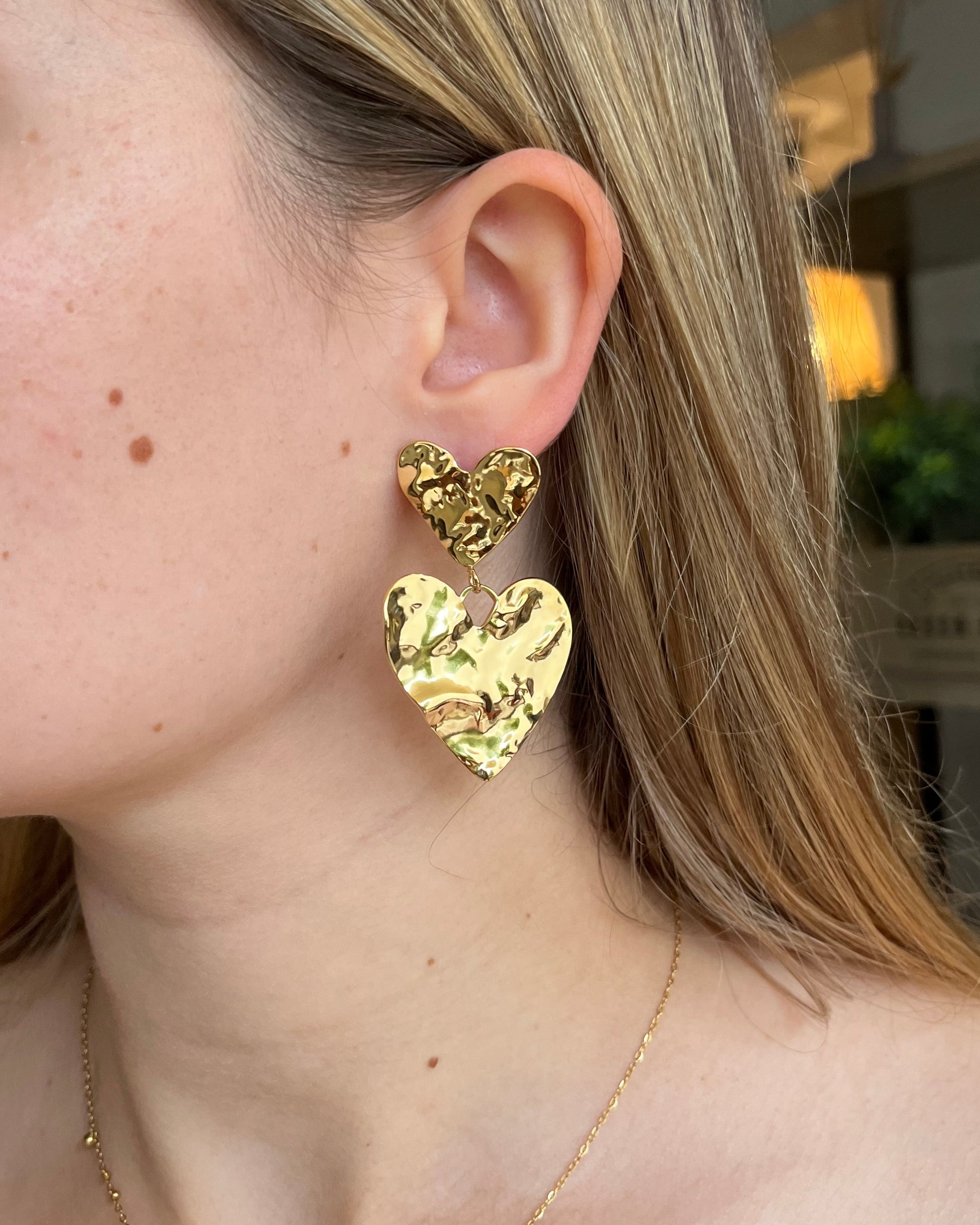 Craquez pour l’élégance romantique de ces boucles pendantes dorées, composées de deux cœurs texturés délicatement liés. Leur design féminin et tendance apporte une touche chic à vos tenues du quotidien comme à vos looks plus habillés. Un bijou plein de charme qui ne passe pas inaperçu.