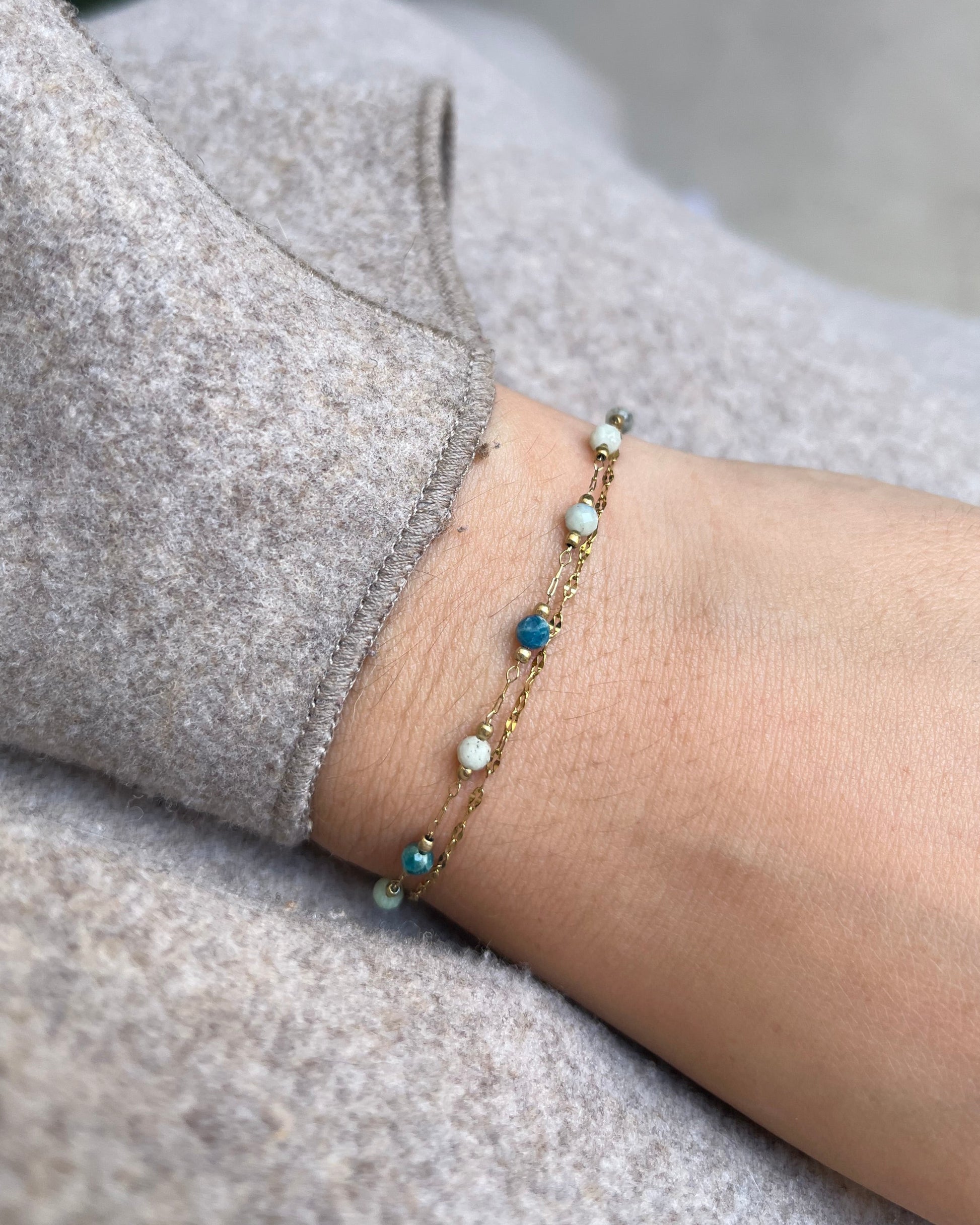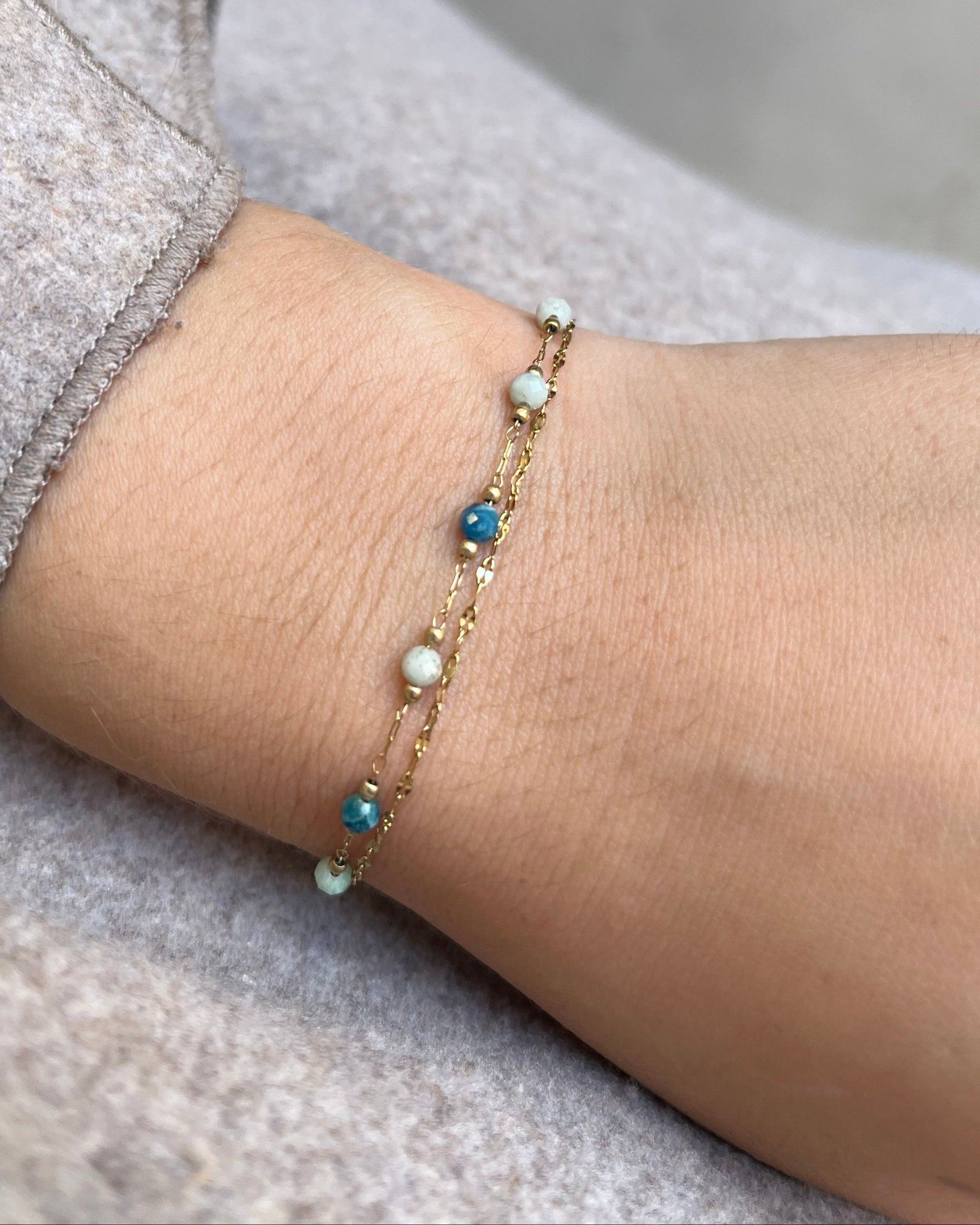 Craquez pour ce bracelet 2 rangs en acier inoxydable, composé d’une chaîne ornée de perles en acier inoxydable pierres naturelles, associée à une élégante maille miroir. Son design raffiné et féminin allie authenticité et modernité, pour un bijou intemporel qui apporte une touche chic à toutes vos tenues.
