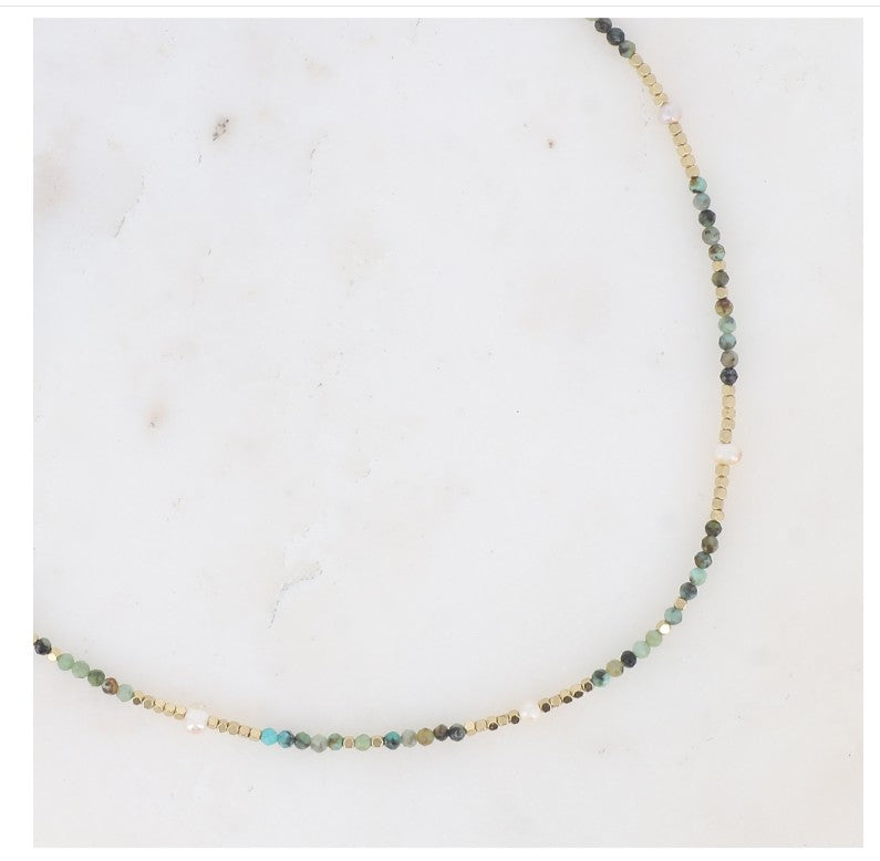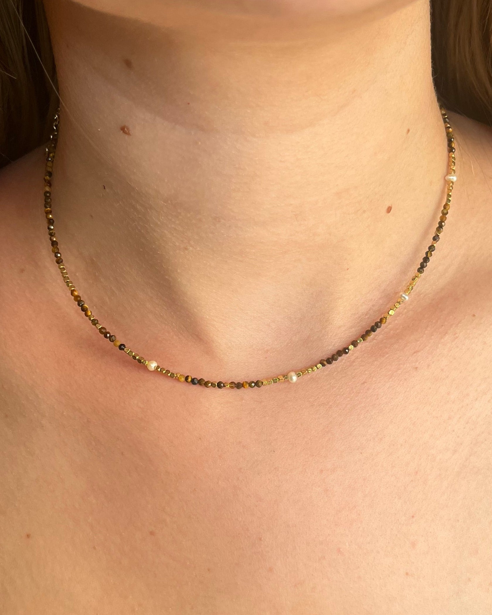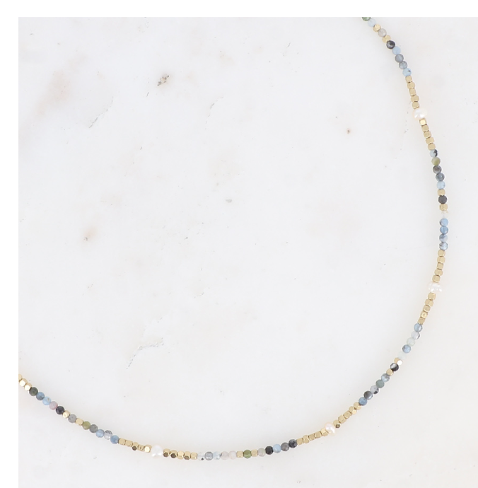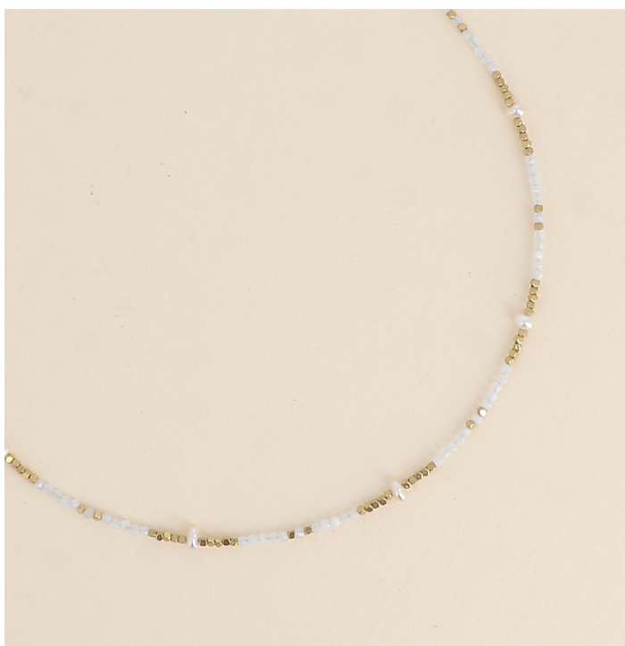Découvre ce collier délicat, alliance subtile entre perles d’eau douce aux reflets nacrés et pierres naturelles soigneusement sélectionnées pour leurs nuances douces et organiques.