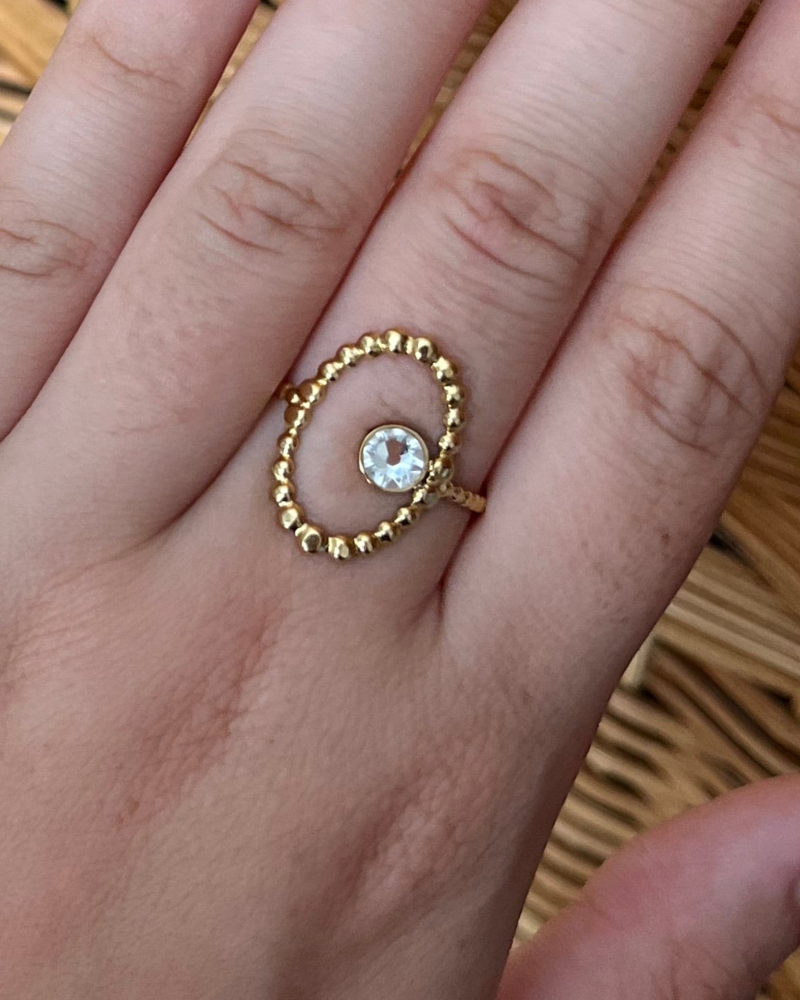 Une bague ronde au design épuré qui fait toute la différence. En son centre, un cristal de Swarovski capte la lumière avec intensité pour un rendu ultra-brillant 💎.