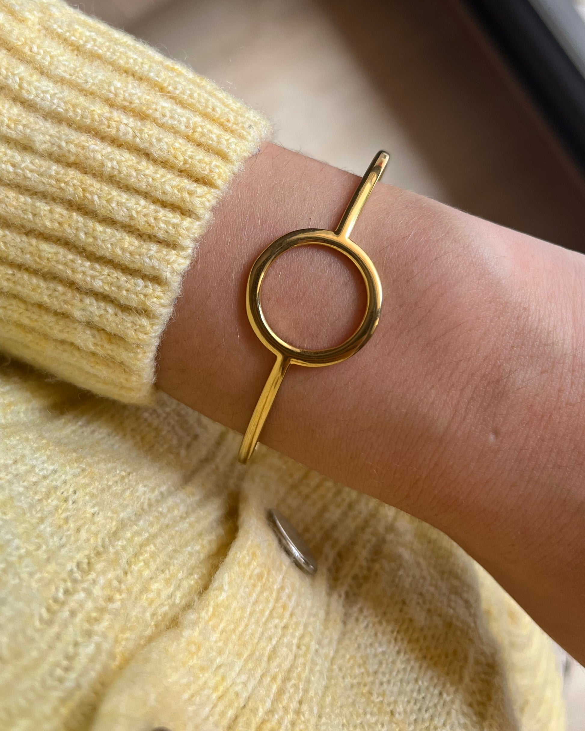 Ce jonc doré au design épuré est sublimé par un cercle central, symbole d’harmonie et d’éternité. Son style à la fois minimaliste et chic en fait un bijou facile à porter au quotidien, seul pour une touche de sobriété élégante, ou en accumulation pour un look plus tendance.