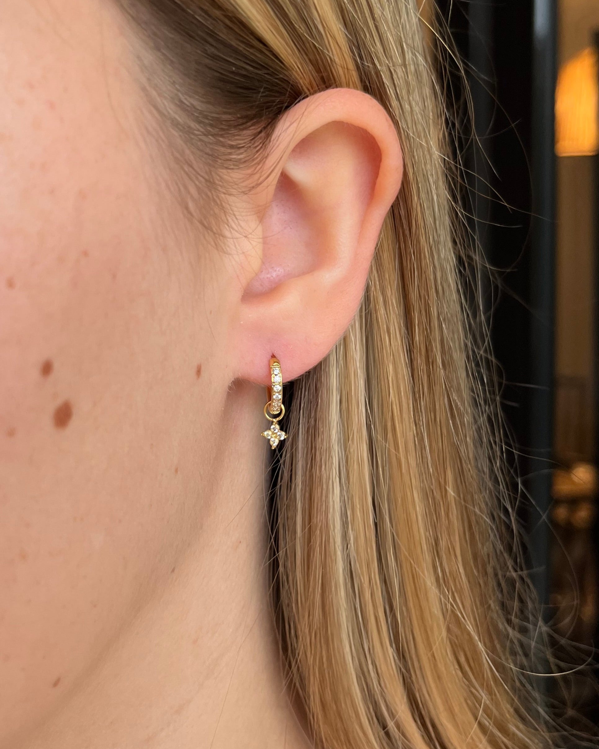 Apportez une touche de délicatesse à vos looks avec ces mini créoles dorées de 11 mm, ornées d’oxydes de zirconium étincelants et d’un trèfle en cristal raffiné. Leur design discret et élégant en fait un bijou parfait pour le quotidien comme pour vos tenues plus habillées. Un porte-bonheur chic à garder toujours près de vous.