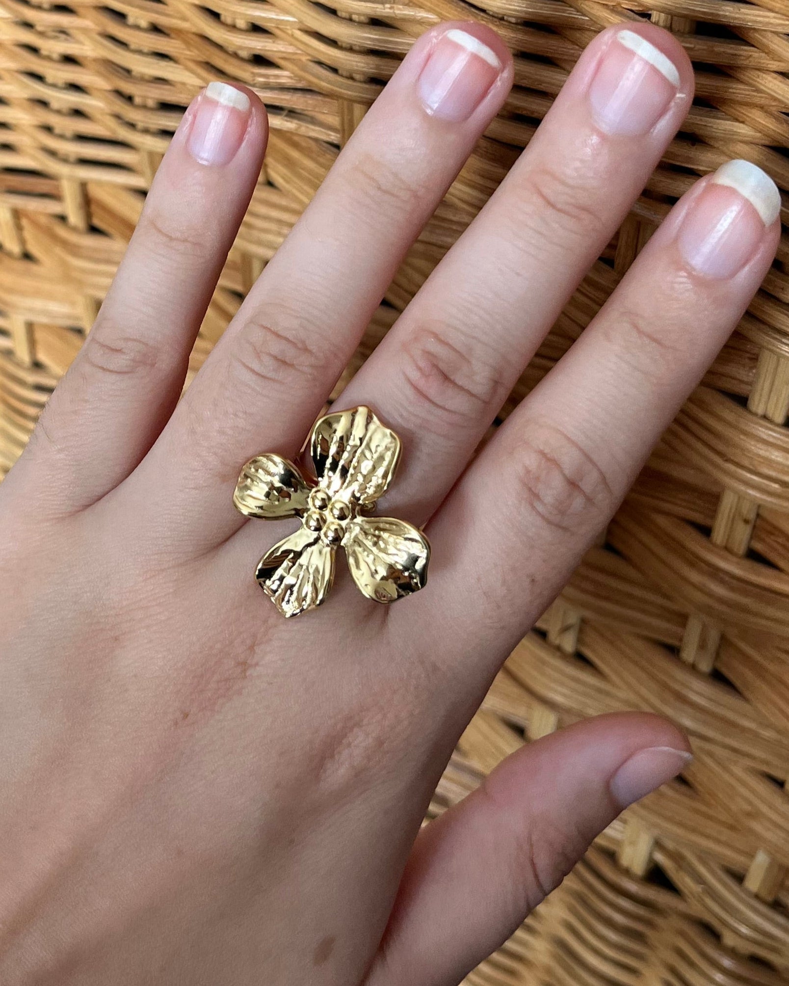 Une bague délicate et lumineuse, inspirée des formes naturelles d’une fleur stylisée. Son design finement sculpté en fait un bijou à la fois poétique et moderne.