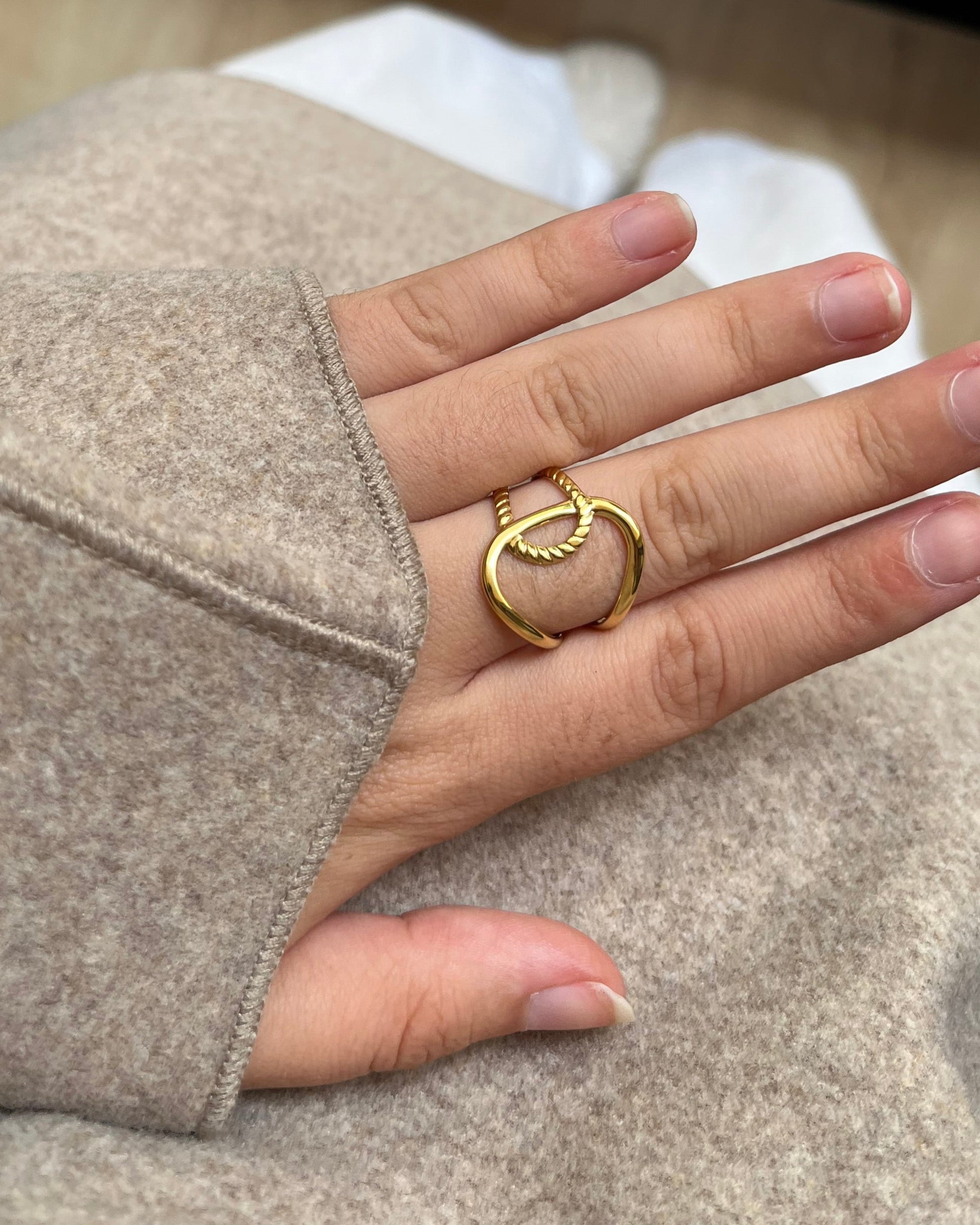 Apportez une touche moderne et raffinée à vos mains avec cette bague large dorée, ornée de lignes entrecroisées délicates. Son design original et chic s’adapte à toutes les occasions, du quotidien aux soirées. Un bijou élégant et tendance qui mettra vos mains en valeur avec style.
