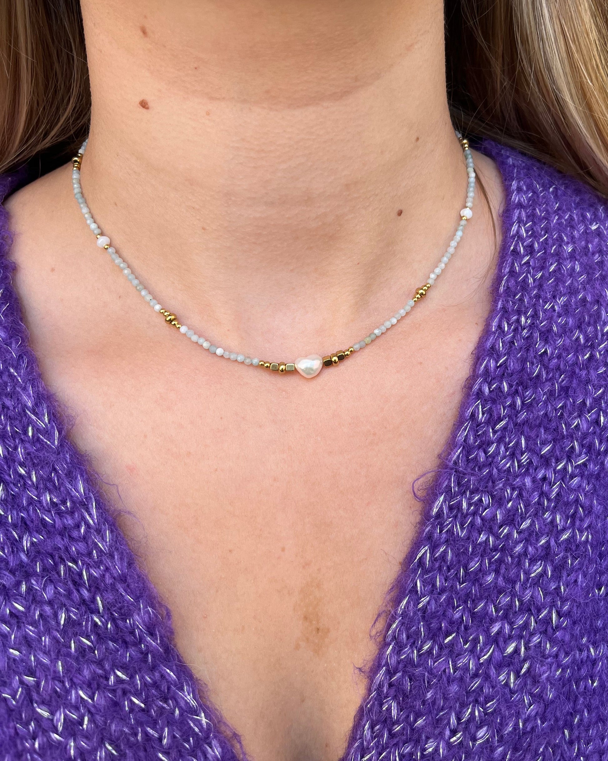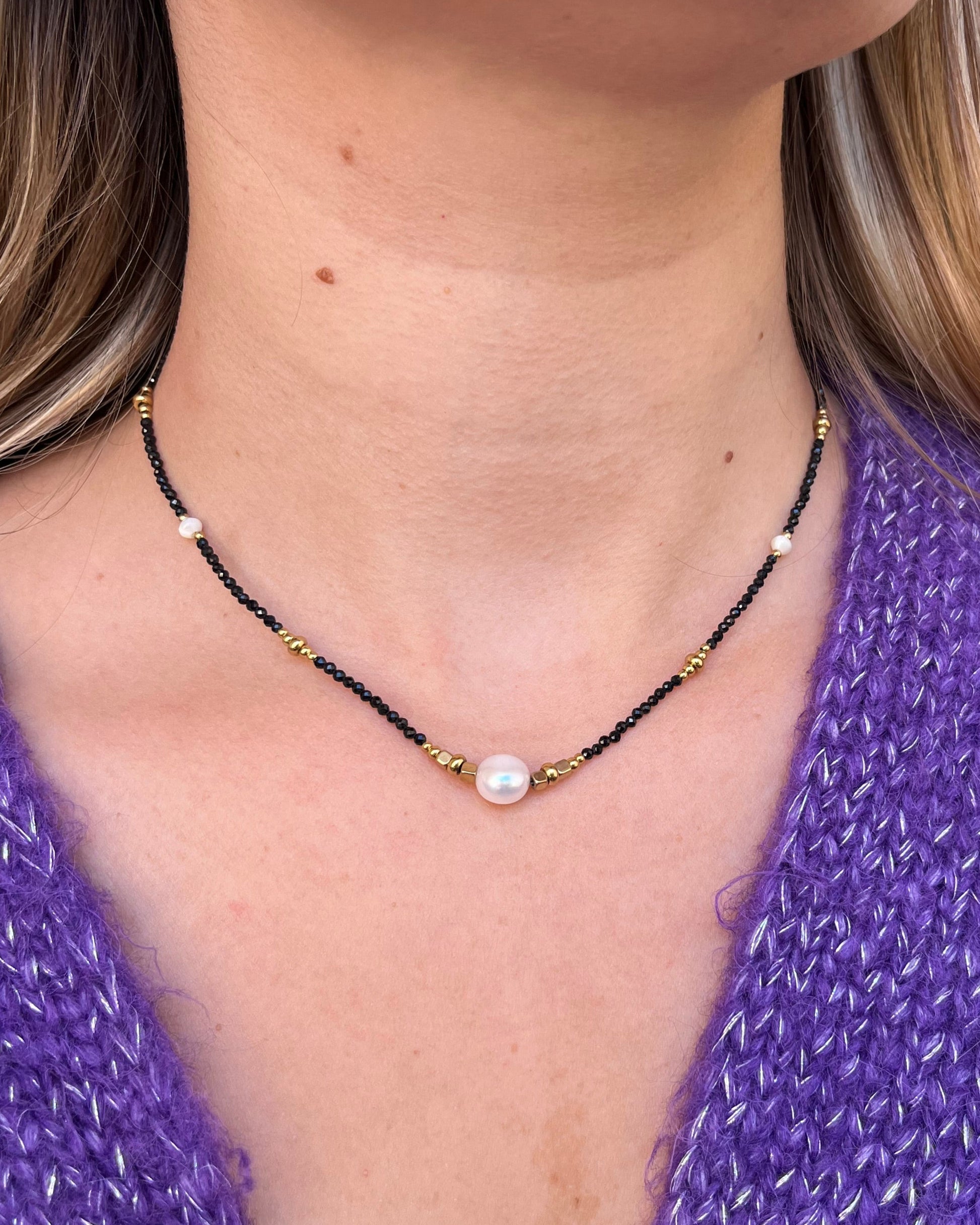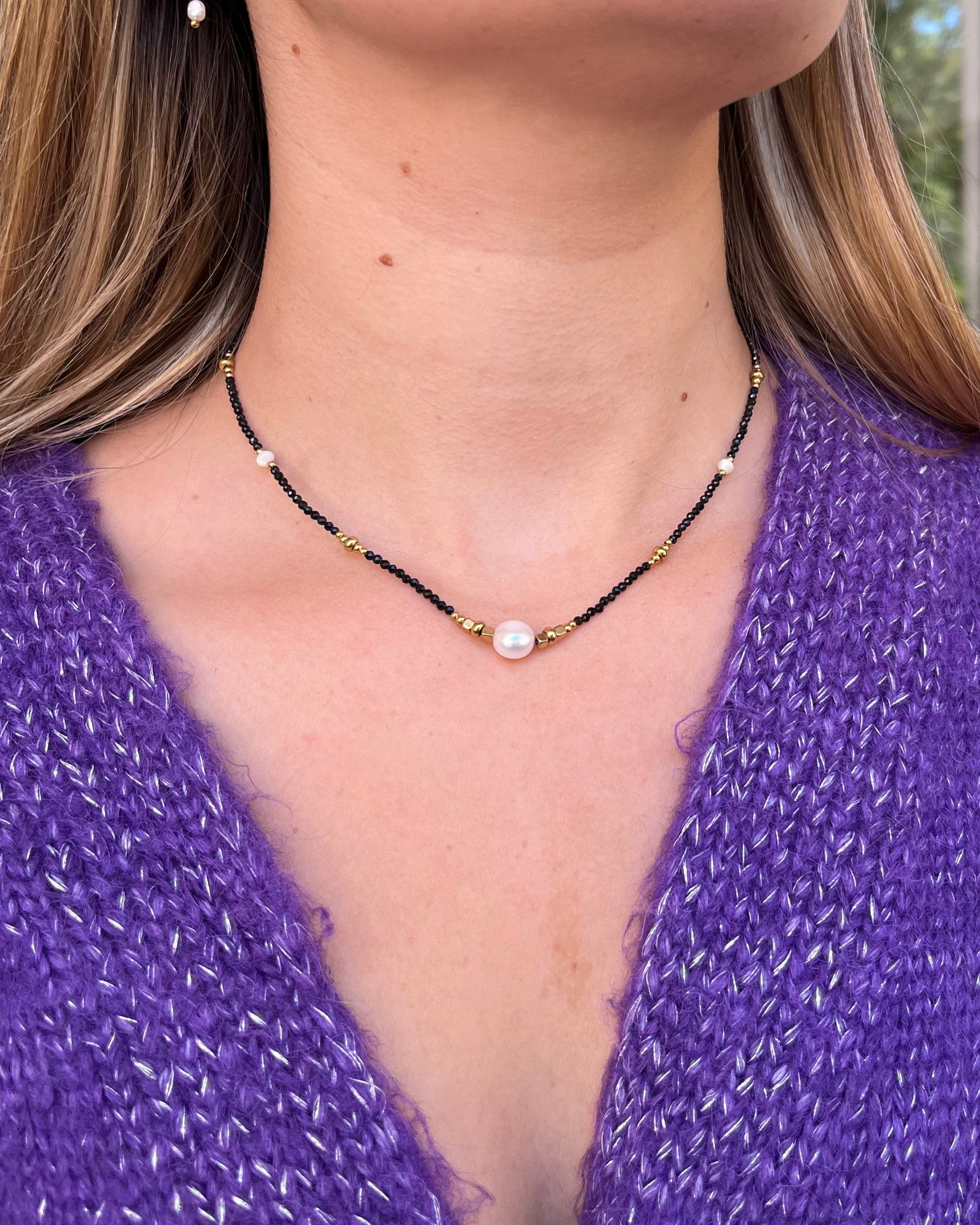 Apportez une touche délicate et raffinée à vos tenues avec ce collier sur fil orné de perles en acier inoxydable, de pierres naturelles et de perles d’eau douce. Son design fin et élégant met en valeur la beauté des matières et se porte aussi bien au quotidien que lors de vos occasions spéciales. Un bijou chic et intemporel qui sublime votre décolleté avec subtilité.