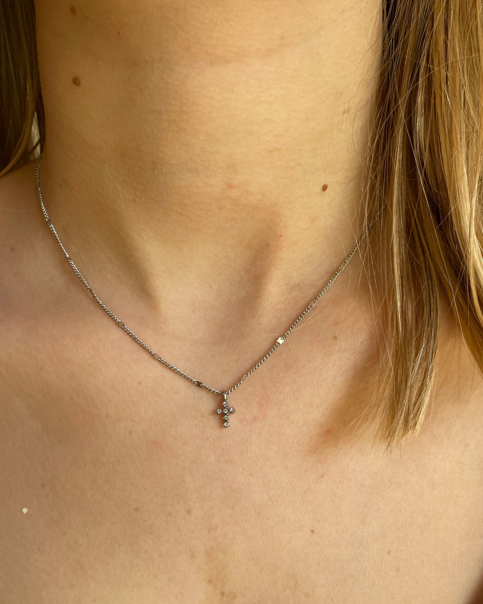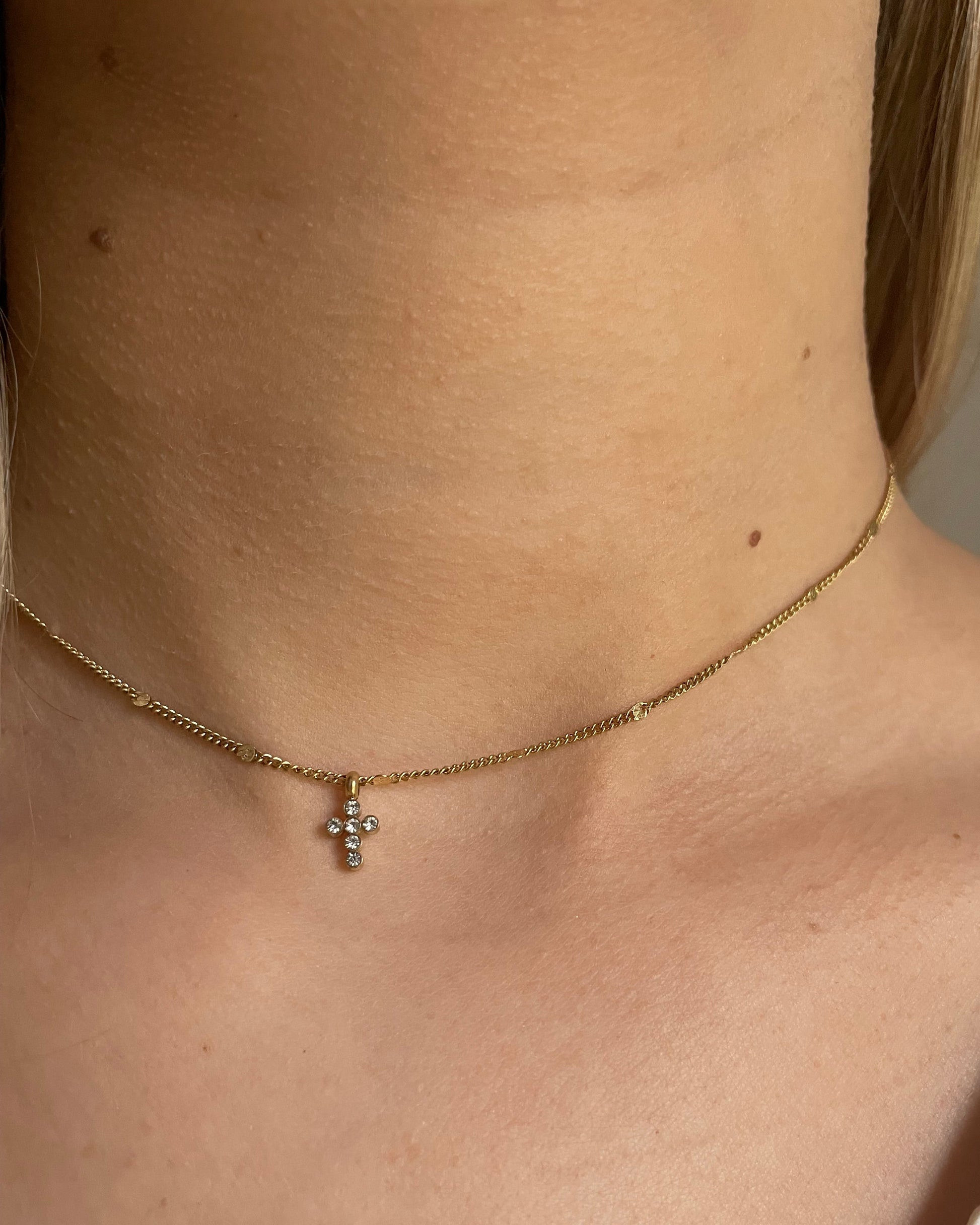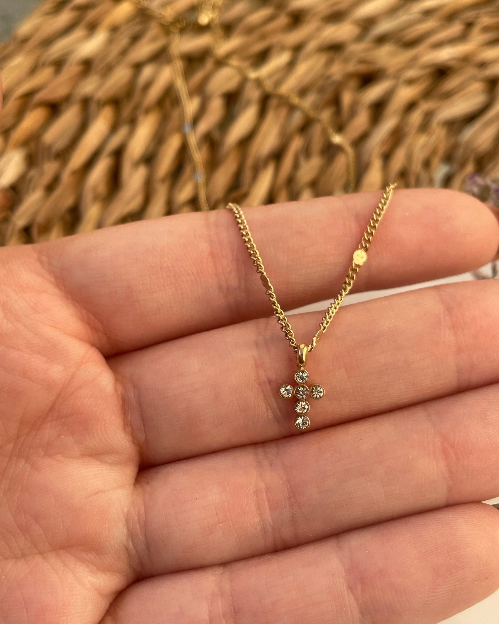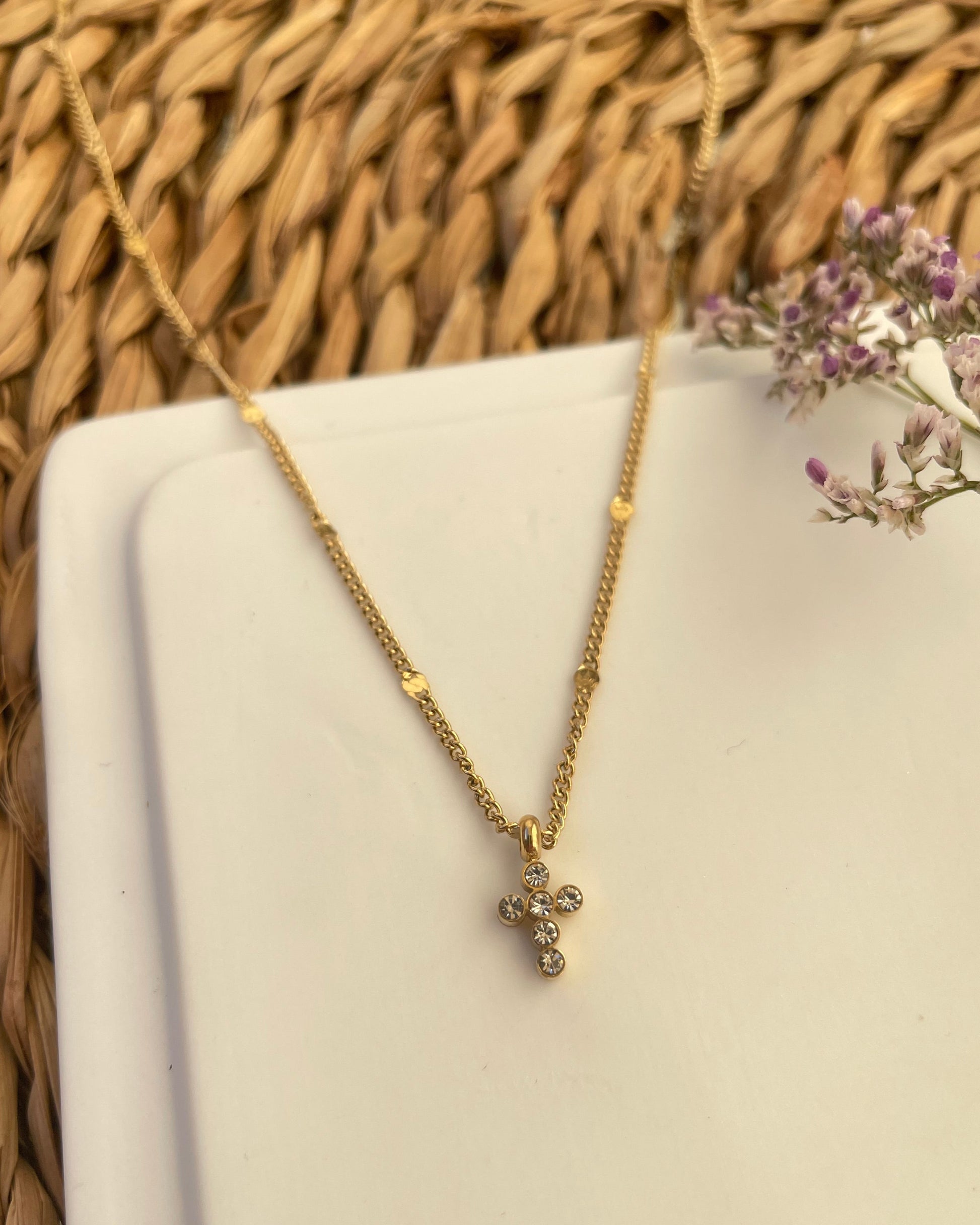 Ce collier élégant et intemporel met en valeur une croix délicatement travaillée en acier inoxydable doré, symbole fort de foi et d'espoir. La croix est suspendue à une chaîne fine et raffinée, d'une longueur idéale.
