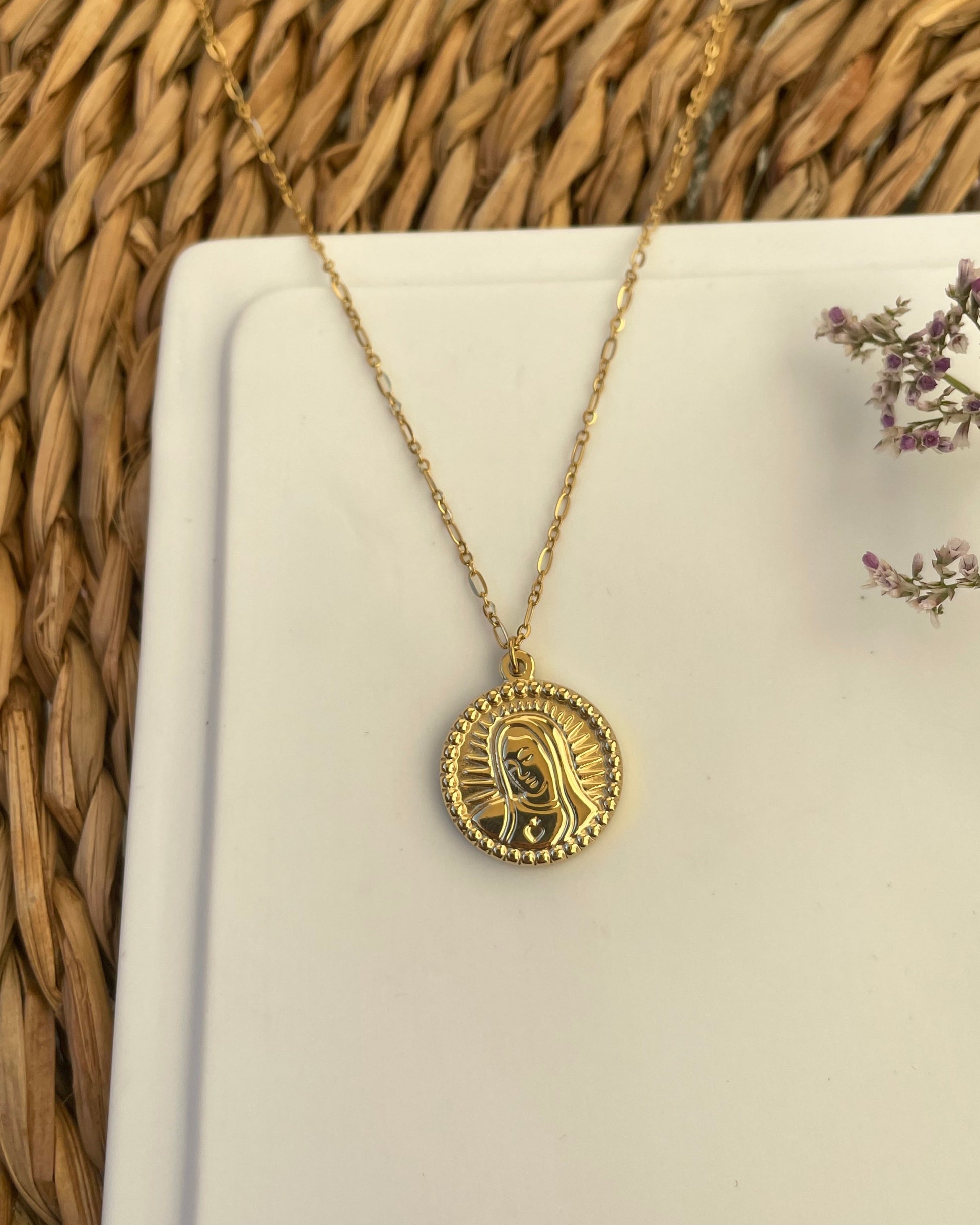 Un symbole intemporel de foi et de protection, ce collier orné d'une médaille de la Vierge Marie apportera une touche spirituelle et élégante à votre style. Le pendentif, finement détaillé, représente la Vierge Marie dans toute sa grâce et sa sérénité, encadrée par un délicat halo doré.