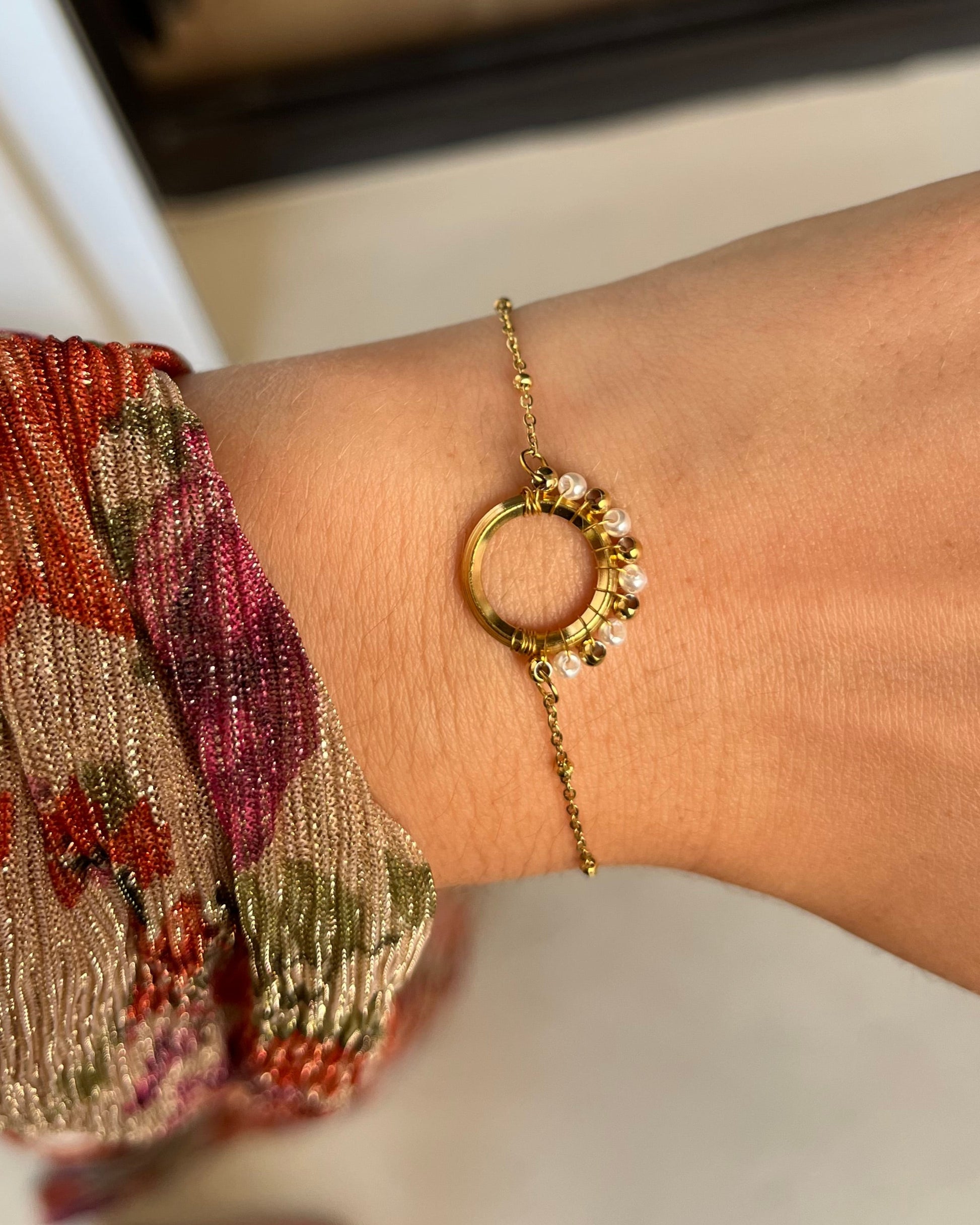 PAULINE - Bracelet doré avec cercle de perles