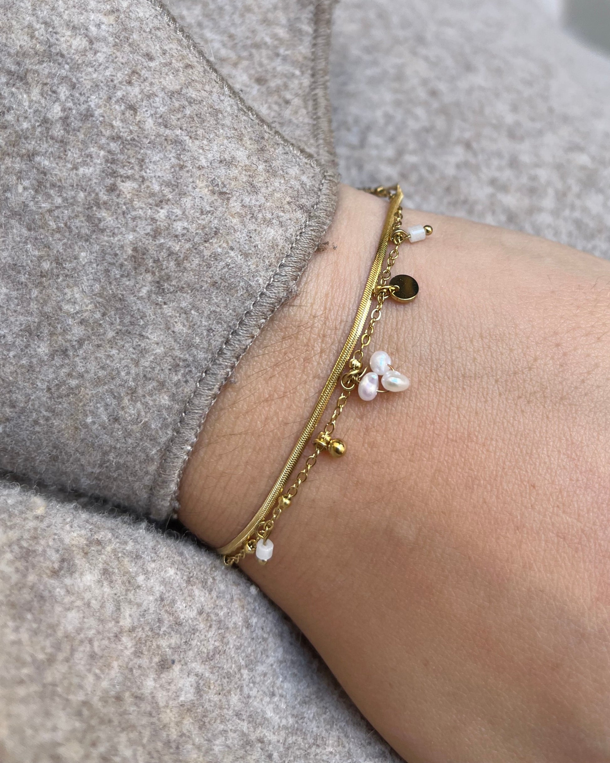 Craquez pour ce bracelet 2 rangs en acier inoxydable, composé d’une chaîne ornée de perles en acier inoxydable et de pierres naturelles, associée à une élégante maille miroir. Son design raffiné et féminin allie authenticité et modernité, pour un bijou intemporel qui apporte une touche chic à toutes vos tenues.