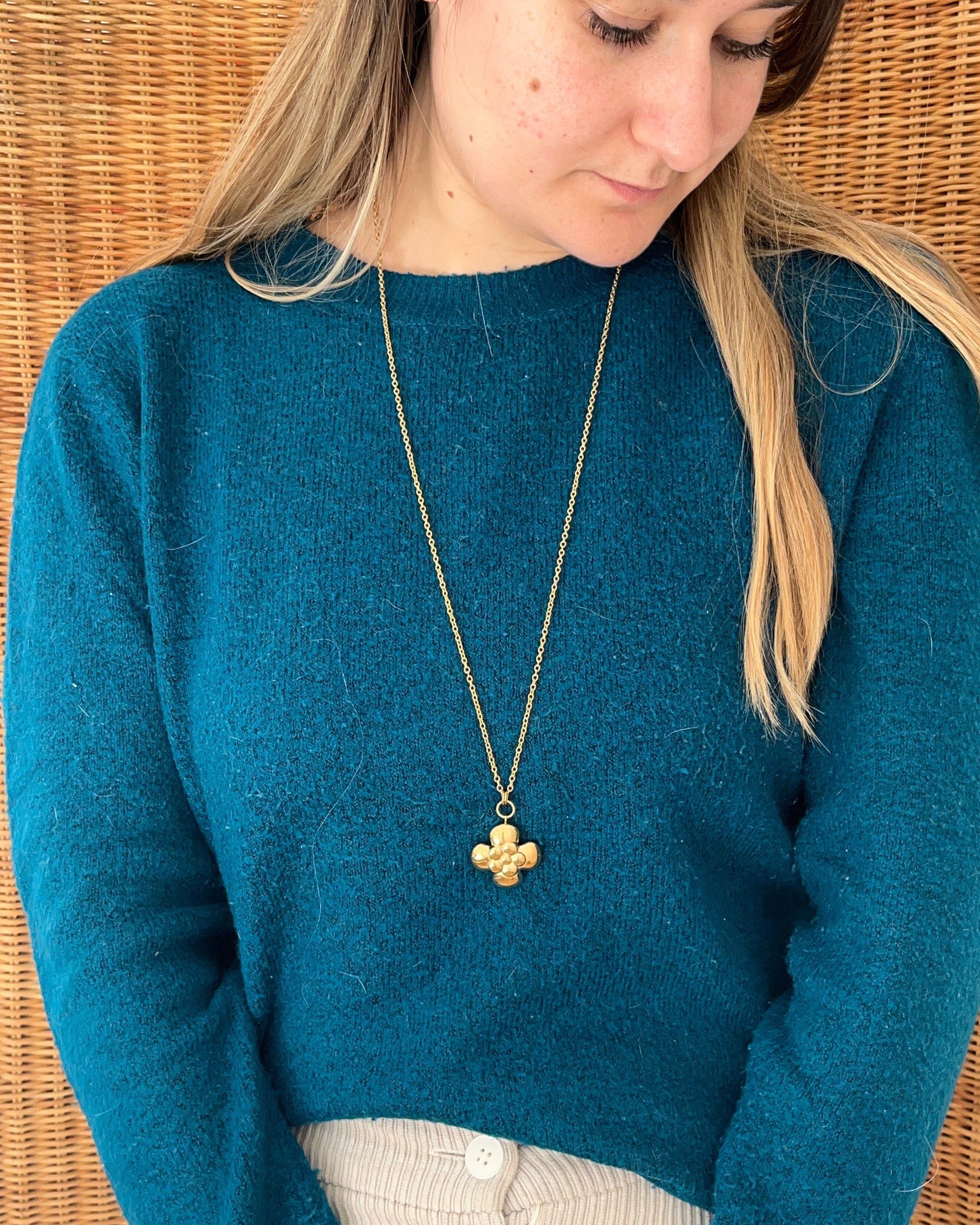 Élégant et féminin, ce sautoir Fleur doré sublime votre silhouette avec délicatesse. Son pendentif floral apporte une touche de romantisme et de douceur, parfaite pour illuminer vos tenues.